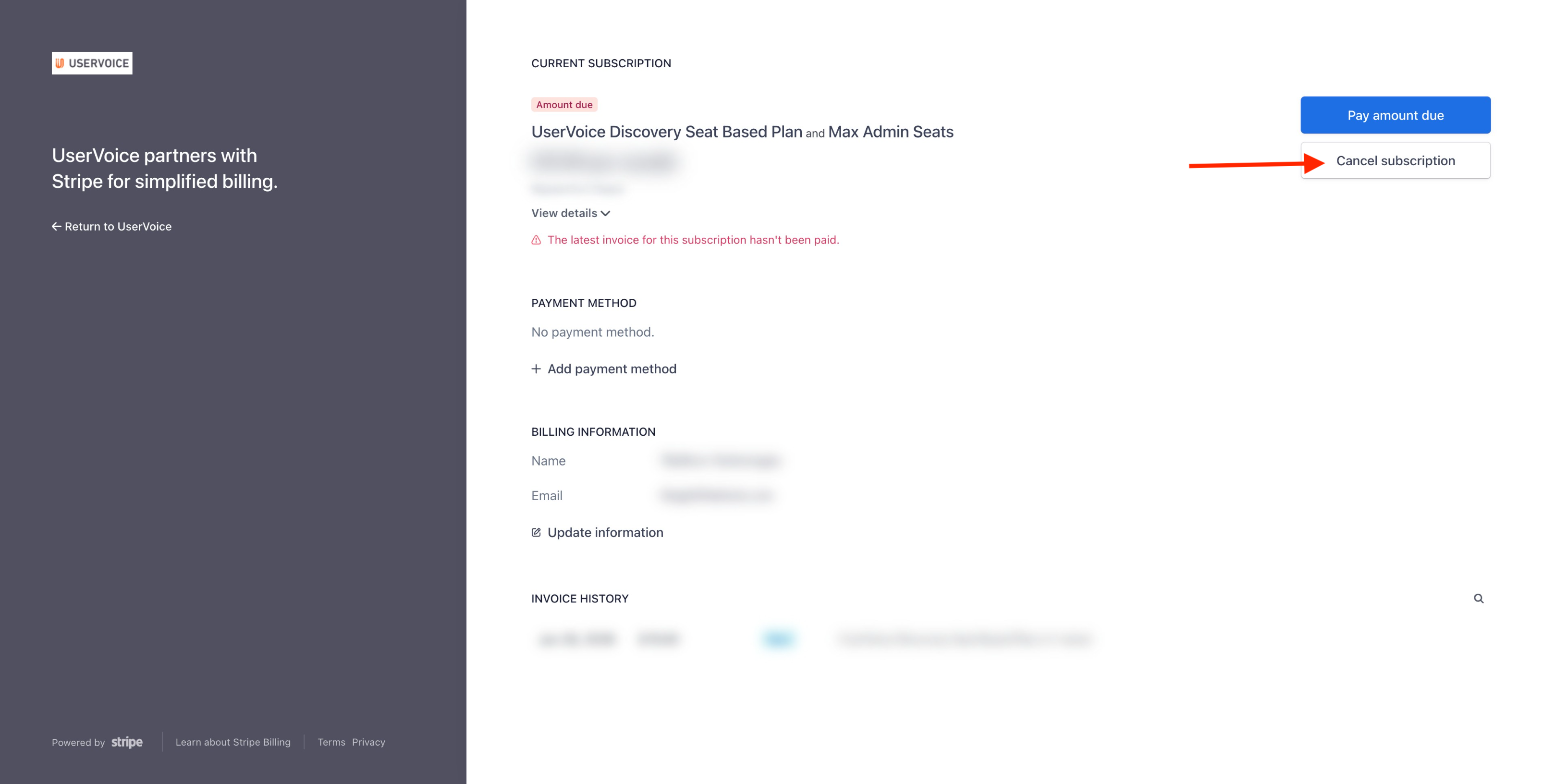 Thank you for being a valuable customer of UserVoice! While we are sad to see you go, we have laid out the following steps to make cancellation as easy as possible.